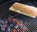 Lachsfilet auf der Planke gegrillt.