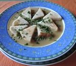 Suppe mit Knoblauch-Nockerl