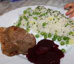 Schnitzel mit Reis und roten Rüben
