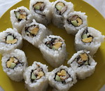 Sushi mit Omelett, Gurke und Sardine